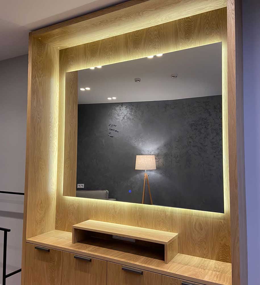 Поможем выбрать спектр света и дизайн зеркала чтобы оно идеально вписалось в ванну, спальню, прихожую или другое помещение. Качество изготовления и обработка удивят даже требовательного клиента